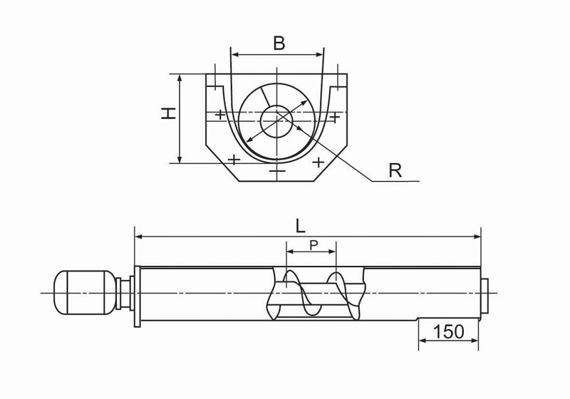 | 型號 | 葉片直徑D | 葉片節(jié)距P | 較大長度 | 排屑槽寬度B | 排泄量(Kg/h) | 電機功率(W) |